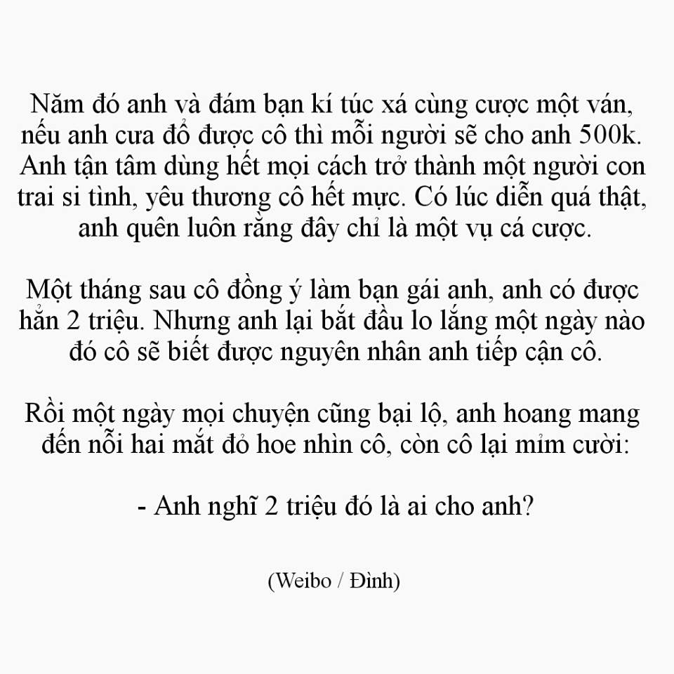 Buổi trưa anh thường lén lút đến gặp cô, cô cũng không đòi anh phải ly dị. Anh nghĩ, sớm muộn gì có lẽ anh cũng phải giải quyết chuyện của mình, để chuyện tình tay ba thế này chính anh cũng thấy cắn rứt lương tâm.